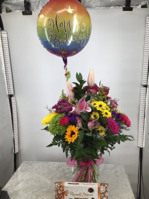 This Birthday Cake flower arrangement is gorgeous and so cute at the same time! My cousin absolutely loved it! She loves flowers but this arrangement is so unique it really made her extra happy on her special day! I also appreciate getting a picture. The picture you sent and the one she sent I must say are much better than the picture online. Thank you so much!!!