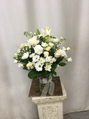 I love the idea of sending a photo to the customer. This is long overdue. My arrangement was very pretty, however I was expecting more white flowers and less greenery.