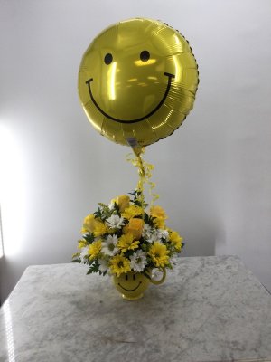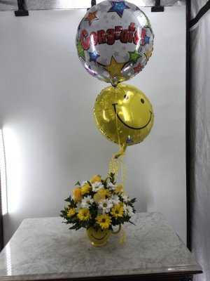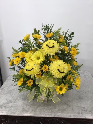 It was a beautiful arrangement but not real happy with the flower choice. Would have liked lilies, carnations & brighter color flowers. I did like receiving the photo.