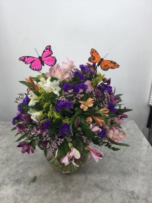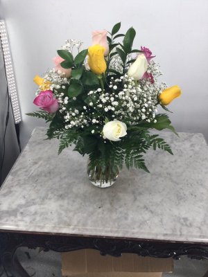 The flowers were very pretty. The arrangement was not as full as I would have preferred. The flowers included all the colors I asked for and it was nice.