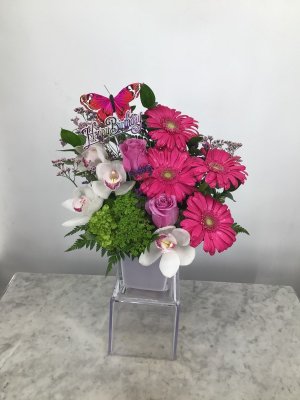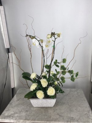 Beautiful arrangement; photo prior and after delivery accurate. Impressive experience. Would use again without hesitation. Thank you for exceeding my expectations!