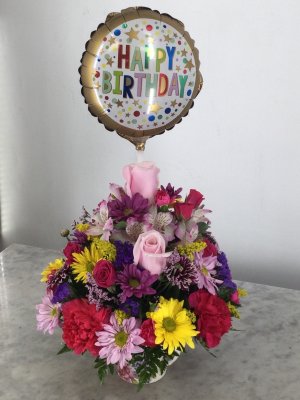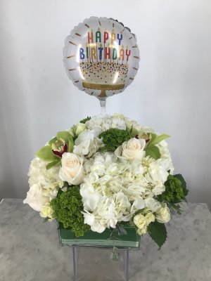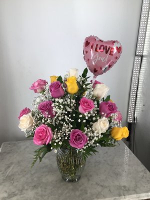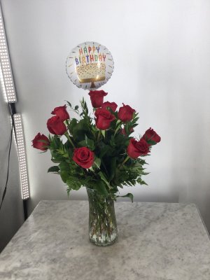 I do not like tiny rainbow balloon- woild like larger balloon. Also, no filler and need two more hydrangeas...and do not like yellow bow. Also supposed to be a dozen yellow amd half dozen orange snd change bow and vase