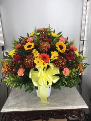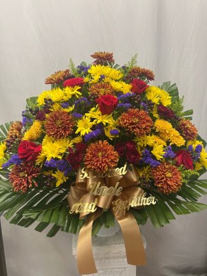 A beautiful display of brightening flowers, crafted and designed with skill and heartfulness.