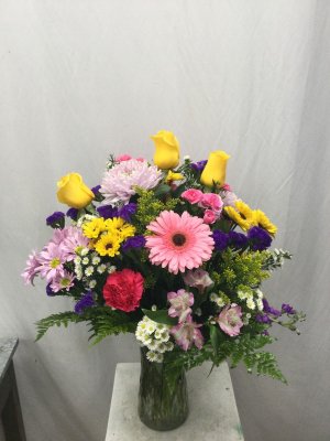 Absolutely beautiful arrangement! The picture doesn't even do it justice! They were delivered on time and truly made the special day even more magical!
