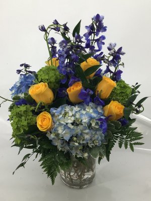 The bouquet and vase were gorgeous. You put them together when I just asked for a spring bouquet. They were also delivered to the funeral home the same day in plenty of time for the service early the next morning. Thx!