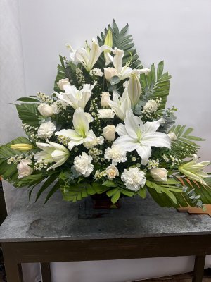 A very beautiful arrangement The deluxe is as pictured with a nice balance of white roses Moravian Florist never disappoints
