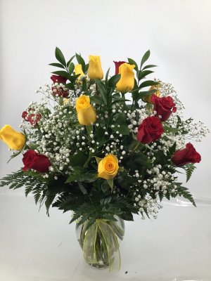 I appreciate seeing the arrangement . With this picture it appears that the yellow rose just has greenery around it and no baby breaths around like the other roses . Could that be added to make better . That's why I gave 4 stars instead of 5.