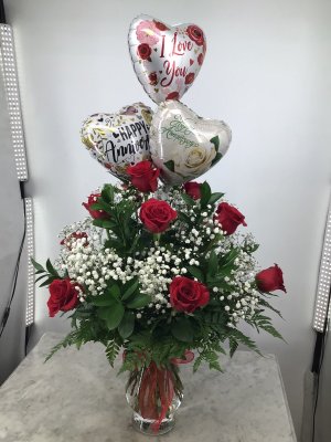 I do not like tiny rainbow balloon- woild like larger balloon. Also, no filler and need two more hydrangeas...and do not like yellow bow. Also supposed to be a dozen yellow amd half dozen orange snd change bow and vase