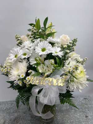 A very beautiful arrangement The deluxe is as pictured with a nice balance of white roses Moravian Florist never disappoints