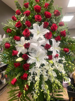 You have more than exceeded my expectations! It is a BEAUTIFUL arrangement. When my siblings and I saw the flowers at the service, it blew us away! Thank you! Yes, loved getting a photo. You definitely have us as a customer for any future needs.