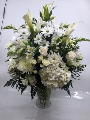 A very beautiful arrangement The deluxe is as pictured with a nice balance of white roses Moravian Florist never disappoints