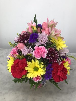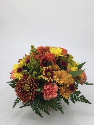This piece was perfect! I was there when it was delivered and the recipient was thrilled. Loved the yellow in it and the size was ideal. They could not thank me enough. So thank you Moravian Florist for a job well done. And yes getting these photos is a definite plus!