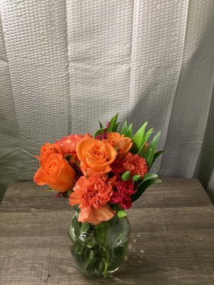 The arrangement is lovely, and I love the vase! The flowers were even more special because they were from my grands!