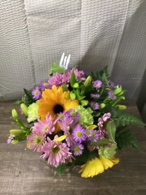 What a beautiful arrangement. Delivered with care and thoughtfulness. Loved getting a photo. Thank you for adding a special touch to my birthday.