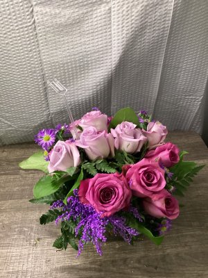 arrangement was beautiful. But, the roses drooped over the next day because they weren't supported with a wire, it appeared.