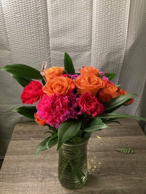 arrangement was beautiful. But, the roses drooped over the next day because they weren't supported with a wire, it appeared.
