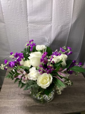 This was a sympathy arrangement for my husband's aunt who lives in Louisiana. We live in Pennsylvania. I was extremely disappointed in the arrangement. It looked NOTHING like the photo in the advertisement. Where were the purple flowers that made the arrangement look stunning in the photo? I paid over $150 for something I could have bought at a grocery store for $29.