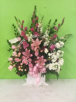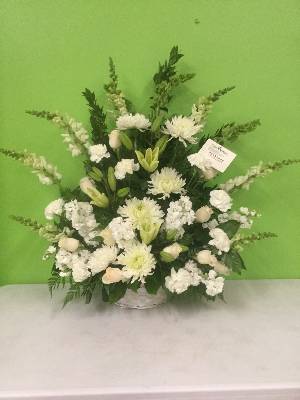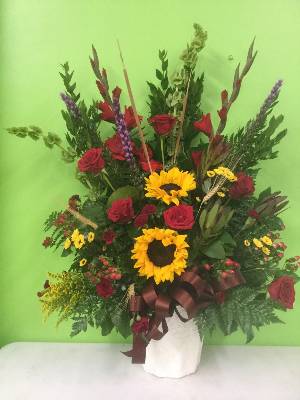 Our beautiful arrangement was highlighted on the center, highest pedestal during the funeral. Thank you. It was beautiful.