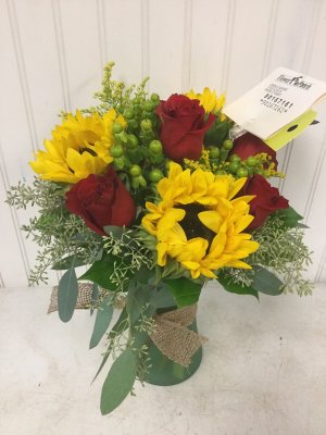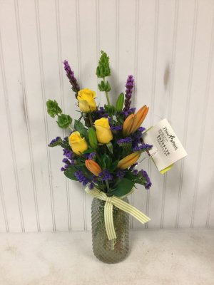 Not sure what happened between the time I was sent a picture of what they looked like and the delivery of the flowers but they looked like they had been tipped over and haphazardly put back together. They were for my wife's boss at her work so not too impressive!