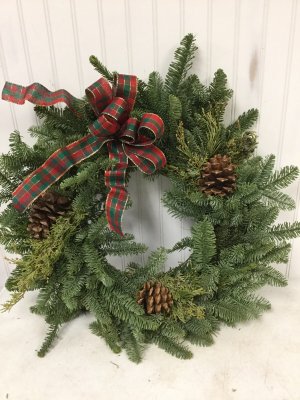 There are no ribbons going through the flowers. It looks very blah! The one we were given for Christmas looked a lot more full! I am very disappointed!