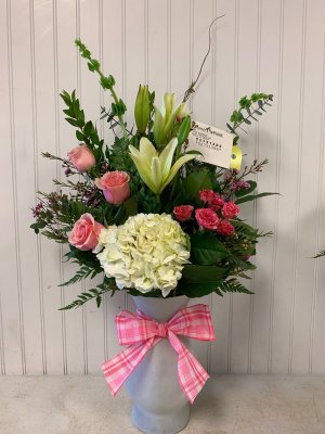 I am disappointed. I originally suggested the Teleflora “peaceful clouds bouquet.” It looks sparce and inexpensive. However the service Mikenly? was excellent.