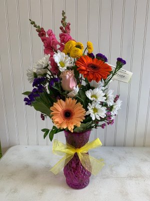 Great service! Delivered the arrangement nice and early! Great arrangement offerings and prices! My mom loved her brilliant arrangement!