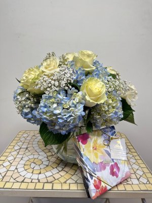 Hi, I like the flower arrangement thank you, but I bought it for the blue vase.