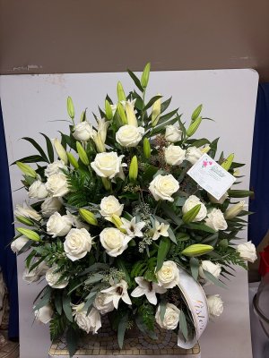 I have to admit I'm disappointed in this arrangement. I ordered the size small of this same arrangement last week and it was perfect. It was full of roses, lillies and greens. This time I ordered the bigger size and it's not half as full as the small and only has some roses and greens. It doesn't even compare to the first one nor the picture you have on line. Please go back and look at the pictures you sent me. Not worth paying over $50 more for it.