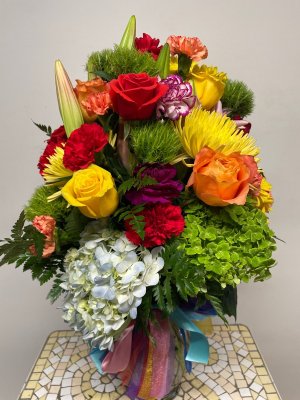 The floral arrangement was beautiful! My recipient was really happy to receive them and continued to enjoy them for a few more weeks. The flowers really made her day! On the other hand, since I made an online order and saw a photo of the bouquet first, I was initially worried about the quality being lower than what was advertised on their website or what was worth what I paid for. So I called them, and they gave me wonderful costumer service--they were very attentive to my concerns and reassured me that the flowers were much better in person. Thank you to the team at Salvy's!