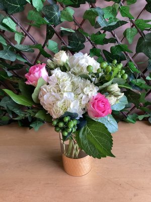 Bouquet was beautiful and delivered safely. I was saddened that the hydrangia in the bouquet wilted the day after receiving though. On the day of delivery, I received the notification that it would be "arriving shortly" but it did not actually get delivered until over an hour later, which was much later than expected given the text.