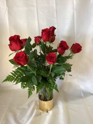 Beautiful except for one rose that lost 1/2 its petals during delivery, disappointing to display at work damaged