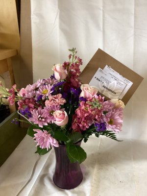 Loved the flowers-just beautiful! Unfortunately, the card attached was not my card, although the outside envelope was addressed to me. My daughter confirmed that they were the correct flowers, just the wrong card. I'm not sure the 23 year old girl named Becca appreciated a birthday card that said “mom”. Lol!!