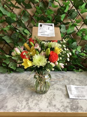 The flowers were bright and beautiful. Thank you for creating such a lovely bouquet!