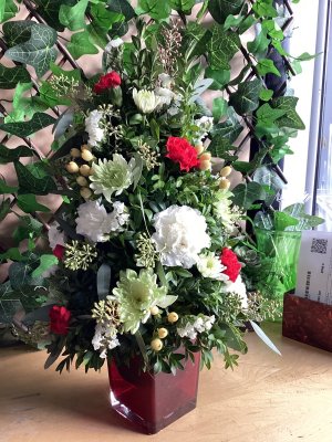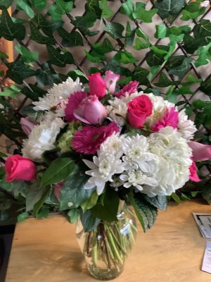 "Nice flowers and beautiful arrangement. The only thing I would say is more communication in regards to arrival!"