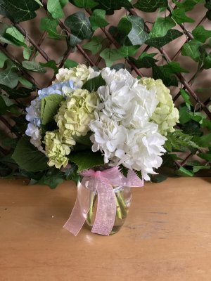 The flower arrangement is beautiful . My guests commented on how lovely they were. Thank you for making my table so pretty.