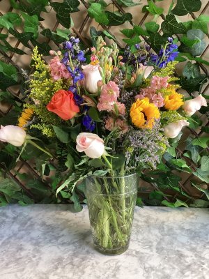 Flowers were delivered as advised; and they are beautiful! The arrangement and colors brighten my home. Several days later….they are as fresh as the day they were delivered. 😊