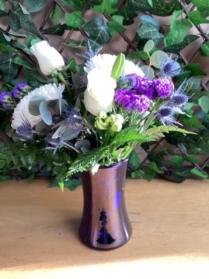 The flower arrangement was beautiful and the vase was exactly what I ordered.
