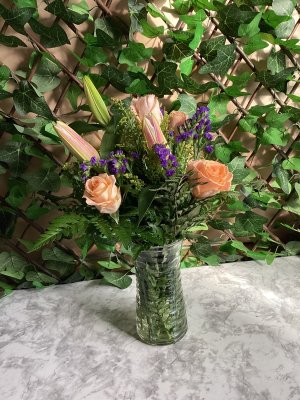 One of the prettiest arrangements I have ever received. The flowers were incredibly fresh. I would highly recommend The Flower Basket