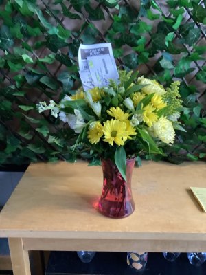 Wonderful flower arrangement with healthy flowers. Delivered on time with an appreciated text that they were on the way. Really loved the flowers and delivery person!