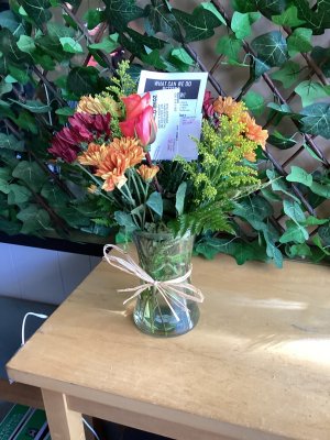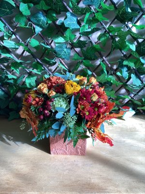 A beautiful fall themed arrangement that warms my my home at a sad moment in my life.