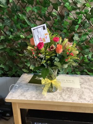 One of the prettiest arrangements I have ever received. The flowers were incredibly fresh. I would highly recommend The Flower Basket