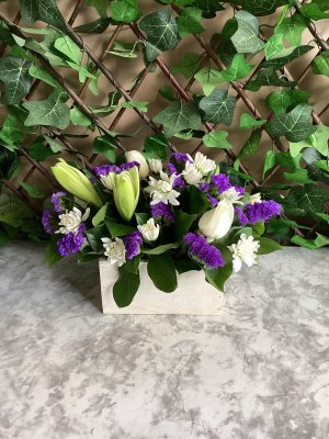 The flowers are beautiful. A gorgeous arrangement . Flowers are fresh and still look great.