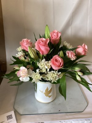 The flowers my Aunt received for my Uncles funeral were very pretty. I thought the arrangement would be a bit larger, however they were pretty.