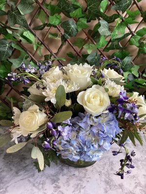 The flowers are beautiful. A gorgeous arrangement . Flowers are fresh and still look great.