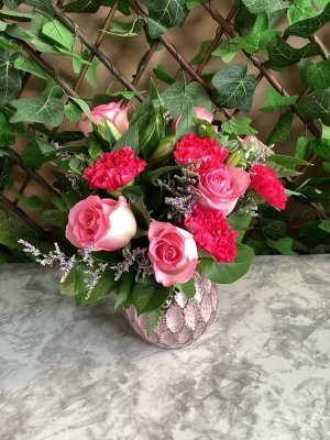 One of the prettiest arrangements I have ever received. The flowers were incredibly fresh. I would highly recommend The Flower Basket