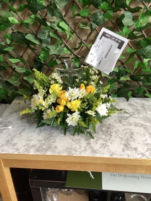 Thank you for the lovely flower arrangement and plant for the passing of my mom. Your delivery person was very kind and waited until he was able to hand deliver the flowers.