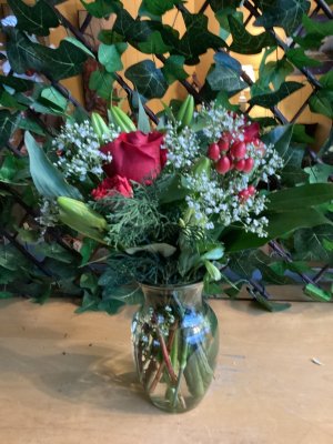 The bouquet is beautiful. But, the gentleman who delivered my flowers was very kind! I had elbow surgery the day before. He offered to set them down for me, closed my front door and wished me Merry Christmas. I appreciate his kindness and assistance! Keep him at all costs!