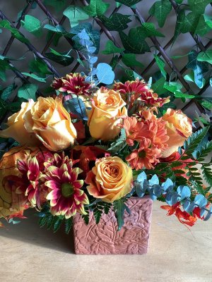 A beautiful fall themed arrangement that warms my my home at a sad moment in my life.