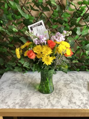 The flowers were bright and beautiful. Thank you for creating such a lovely bouquet!