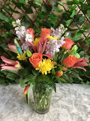 Flowers were delivered as advised; and they are beautiful! The arrangement and colors brighten my home. Several days later….they are as fresh as the day they were delivered. 😊